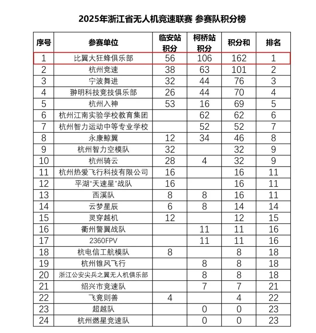 比翼大狂蜂总积分继续领跑!2025年浙江省无人机竞速联赛(柯桥站)圆满落幕