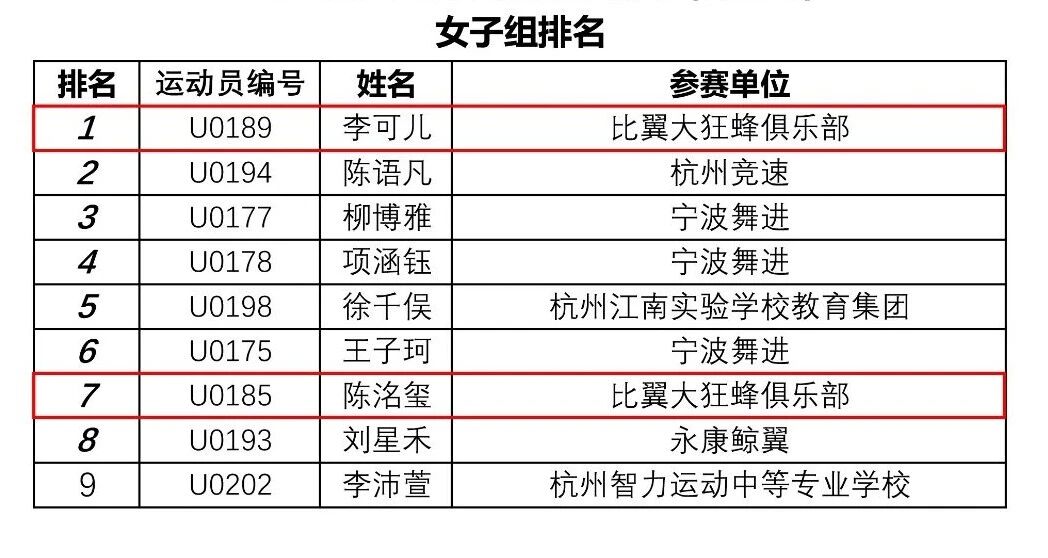 经过资格赛、淘汰赛和决赛的终极比拼,张丹维凭借出色和稳定的发挥斩获公开组季军,李可儿斩获女子组第一,凭借团队成员在各组别中的稳定输出与出色配合,比翼大狂蜂俱乐部最终以积分第二的成绩,荣获柯桥站团体亚军,目前,总积分暂列第一。
