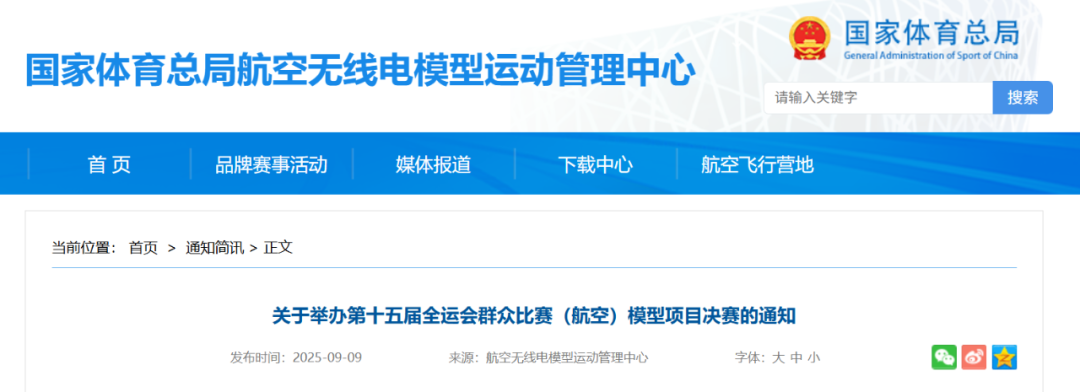关于举办第十五届全运会群众比赛(航空)模型项目决赛的通知