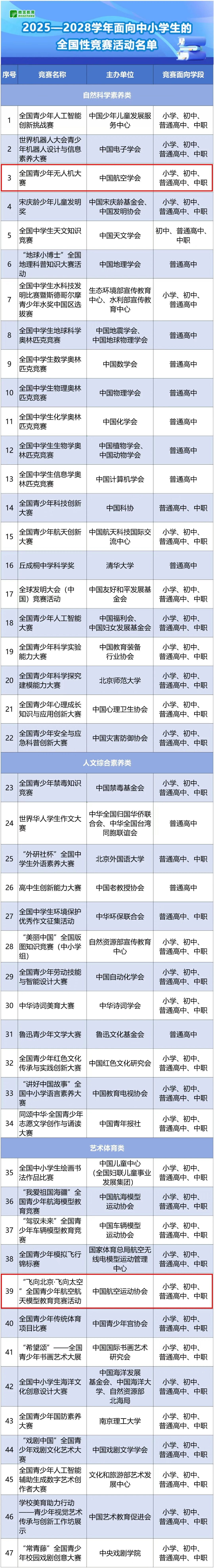 “白名单”公布!教育部办公厅关于公布2025—2028学年面向中小学生的全国性竞赛活动的通知
