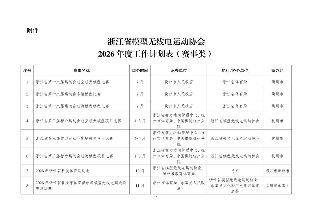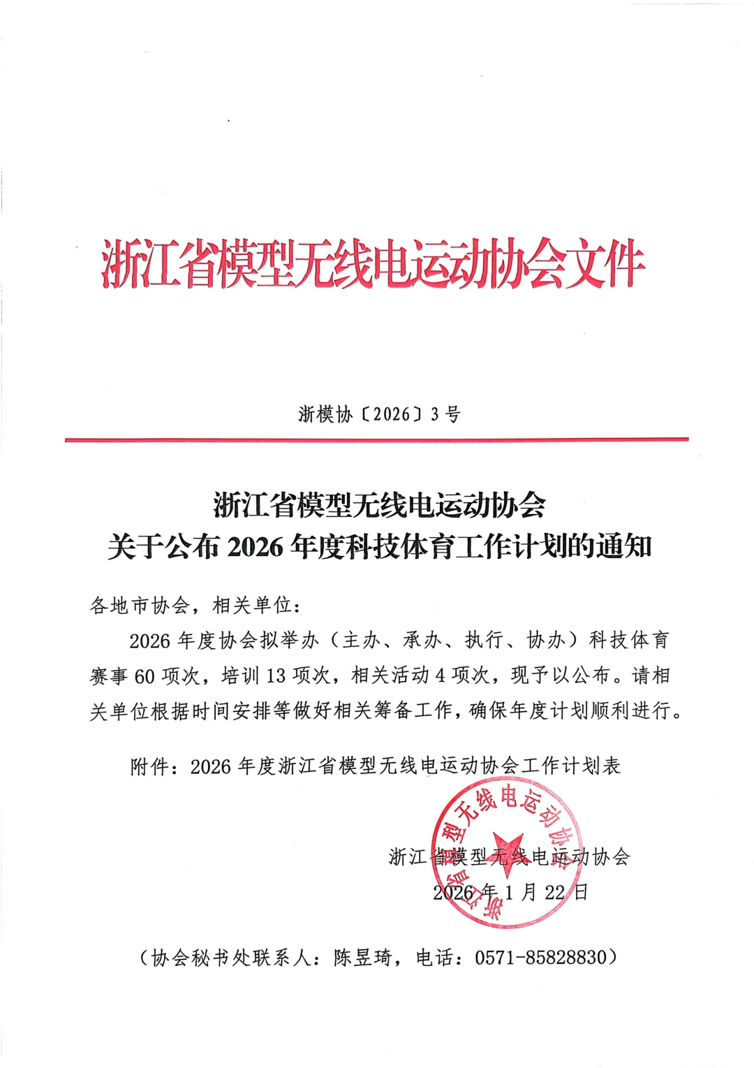 浙江省模型无线电运动协会关于公布2026年度科技体育工作计划的通知
