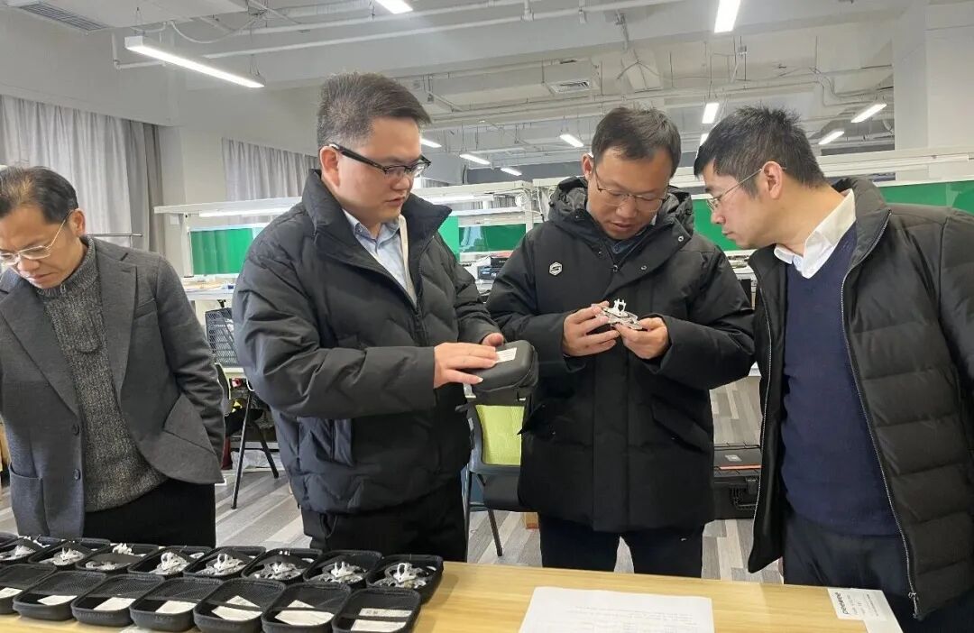 检查组一行首先参观了比翼科技的办公环境和低空装备生产线,实地察看比翼自主研发的无人机、商用飞行器、计时器等系列产品,从无人机的组装、调试与测试全流程,详细了解企业在自主研发、智能制造、质量控制等方面的能力与成果,并就产品的标识、性能、应用场景等问题进行交流。
